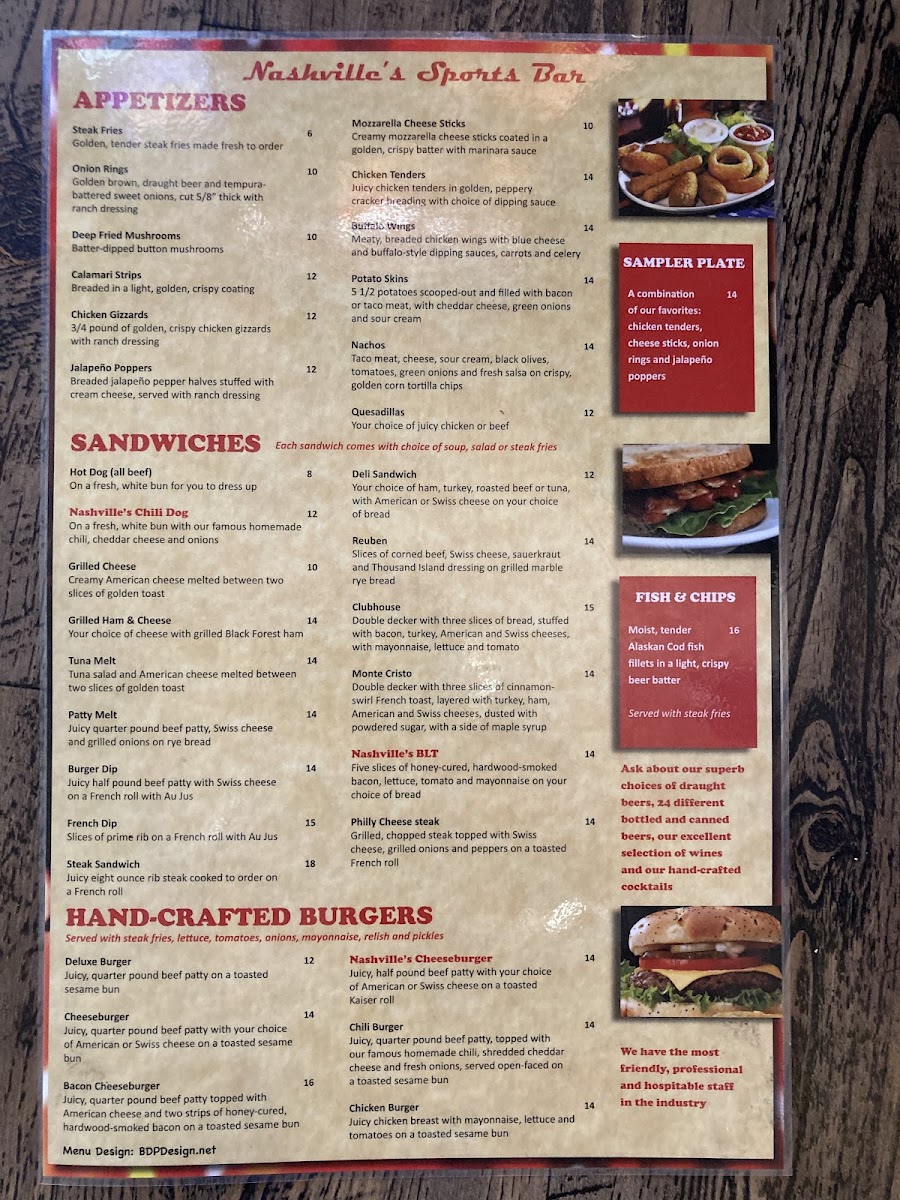 Nashville's Sports Bar & Grill Menu
